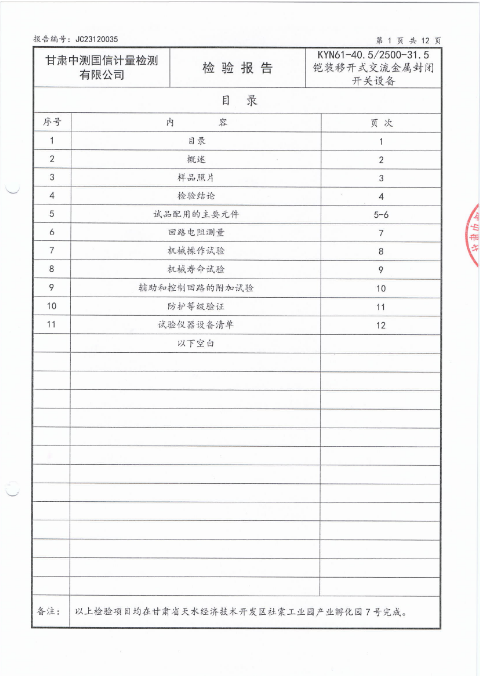 KYN61-40.5/2500-31.5 3C檢驗報告